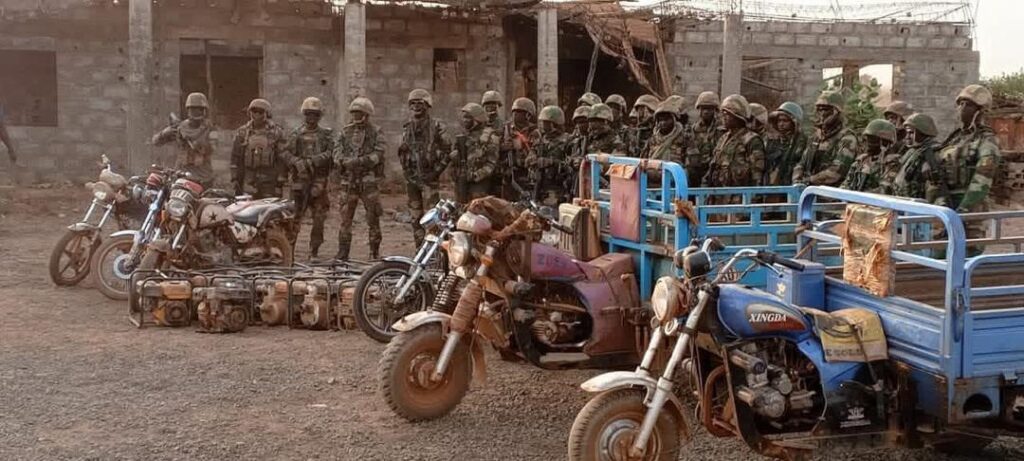 C’est à environ 4 km au nord de la localité de Moussala, une zone frontalière particulièrement sensible, que les militaires ont lancé l’assaut. Cette opération s’inscrit dans le cadre des missions de sécurisation du territoire et de lutte contre la dégradation environnementale causée par l’usage de produits toxiques et le dragage sauvage du fleuve Falémé.