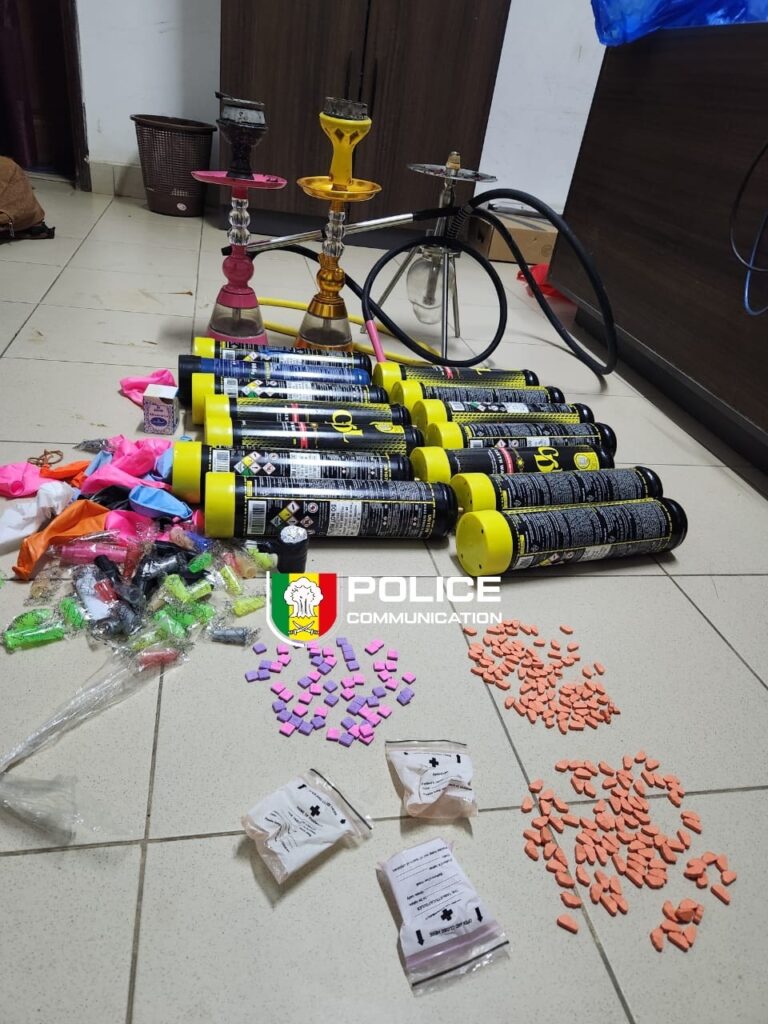 Le lendemain, aux environs de 13h30, les éléments de la BRS sont intervenus, surprenant les suspects en pleine consommation. L’enquête a révélé qu’ils s’apprêtaient à recevoir une nouvelle livraison de produits psychotropes.