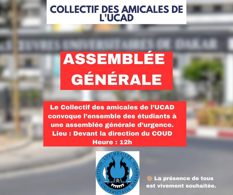 La tension remonte d’un cran à l’Université Cheikh Anta Diop de Dakar (UCAD). Ce vendredi 6 février 2026, le Collectif des Amicales a convoqué une Assemblée Générale d’urgence devant la direction du COUD à 12h, pour dénoncer ce qu’il qualifie de mesures « brutales » sur le paiement des bourses.